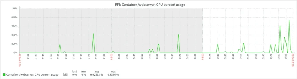 Summing up, I can say that Zabbix has proven to be a powerful, though sometimes complex, tool for monitoring a Docker environment. Its main advantage lies in the incredible depth of analysis: with access to 40 different metrics per container, I’ve stopped guessing why a database or web server is “lagging.” The ability to see specific indicators, such as CPU Throttling or detailed network errors, provides a level of control that no standard utility can provide. The Auto-Discovery feature was particularly valuable to me — now every new service I spin up on my Raspberry Pi instantly appears on the dashboard without any manual configuration.