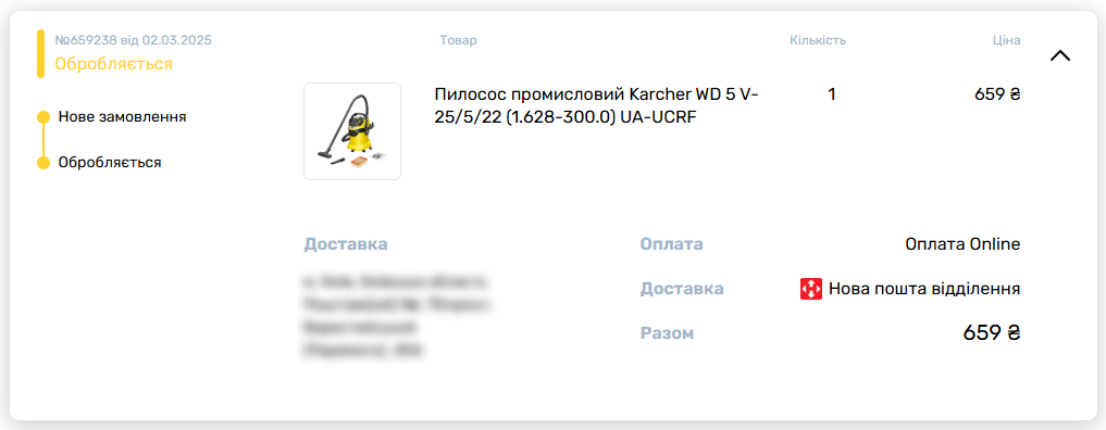 При створені замовлення вказав відділення нової пошти, і сплатив замовлення онлайн. Загальна сума збільшилася на 1% і склала 666 грн. Буквально миттєво мені на пошту прийшо